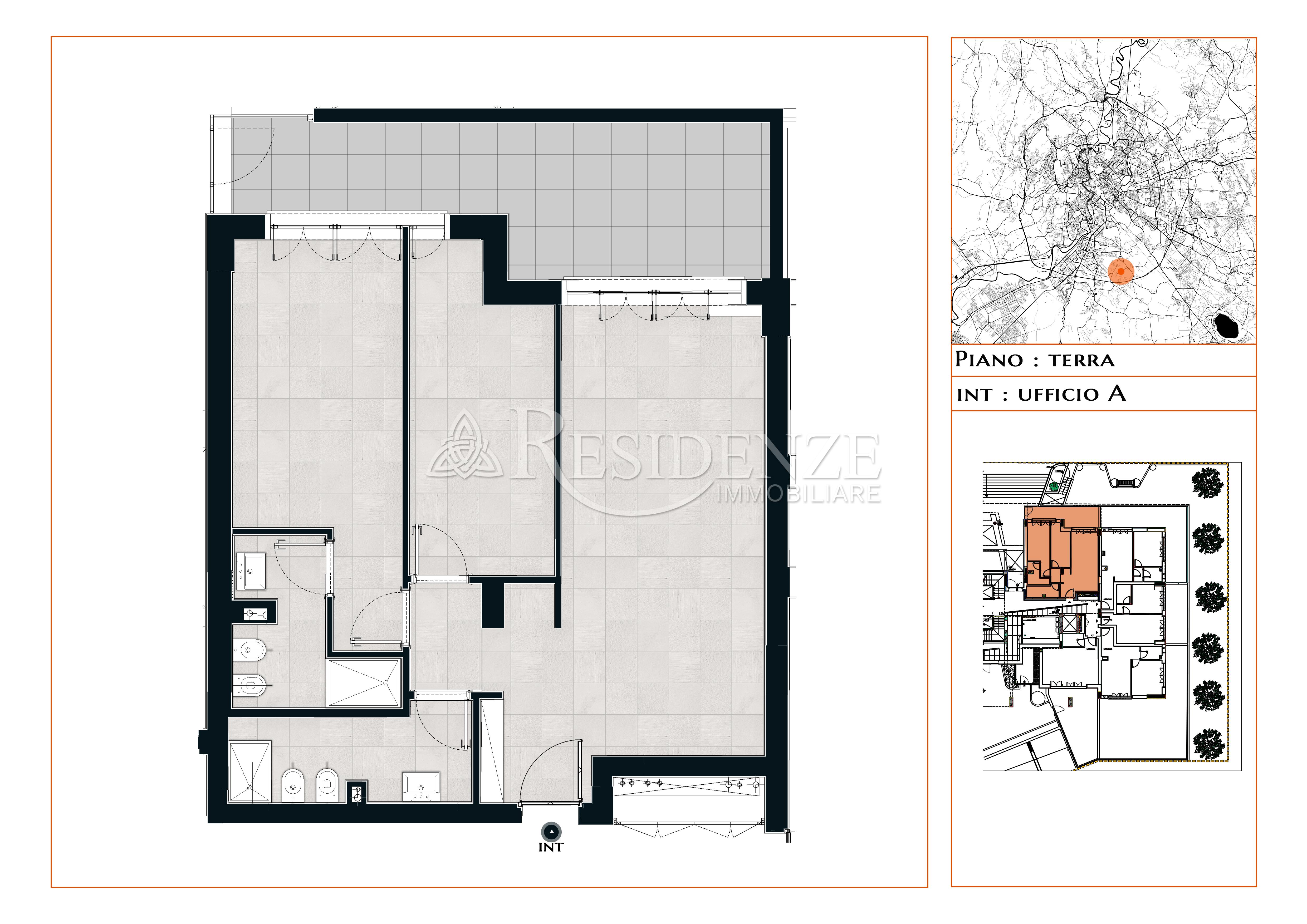 L'ufficio copre una superficie di 82 mq ed è così distribuito: