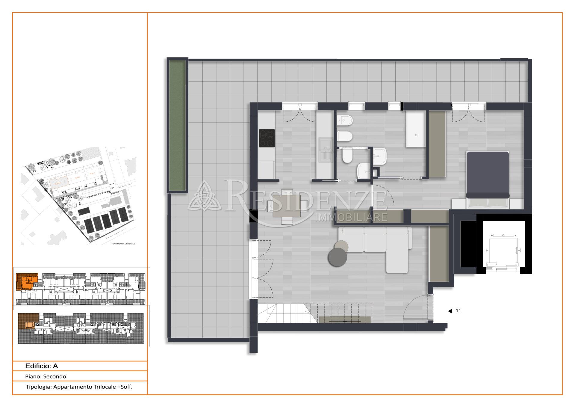 Tipologia trilocale bilivello posto al piano secondo e terzo