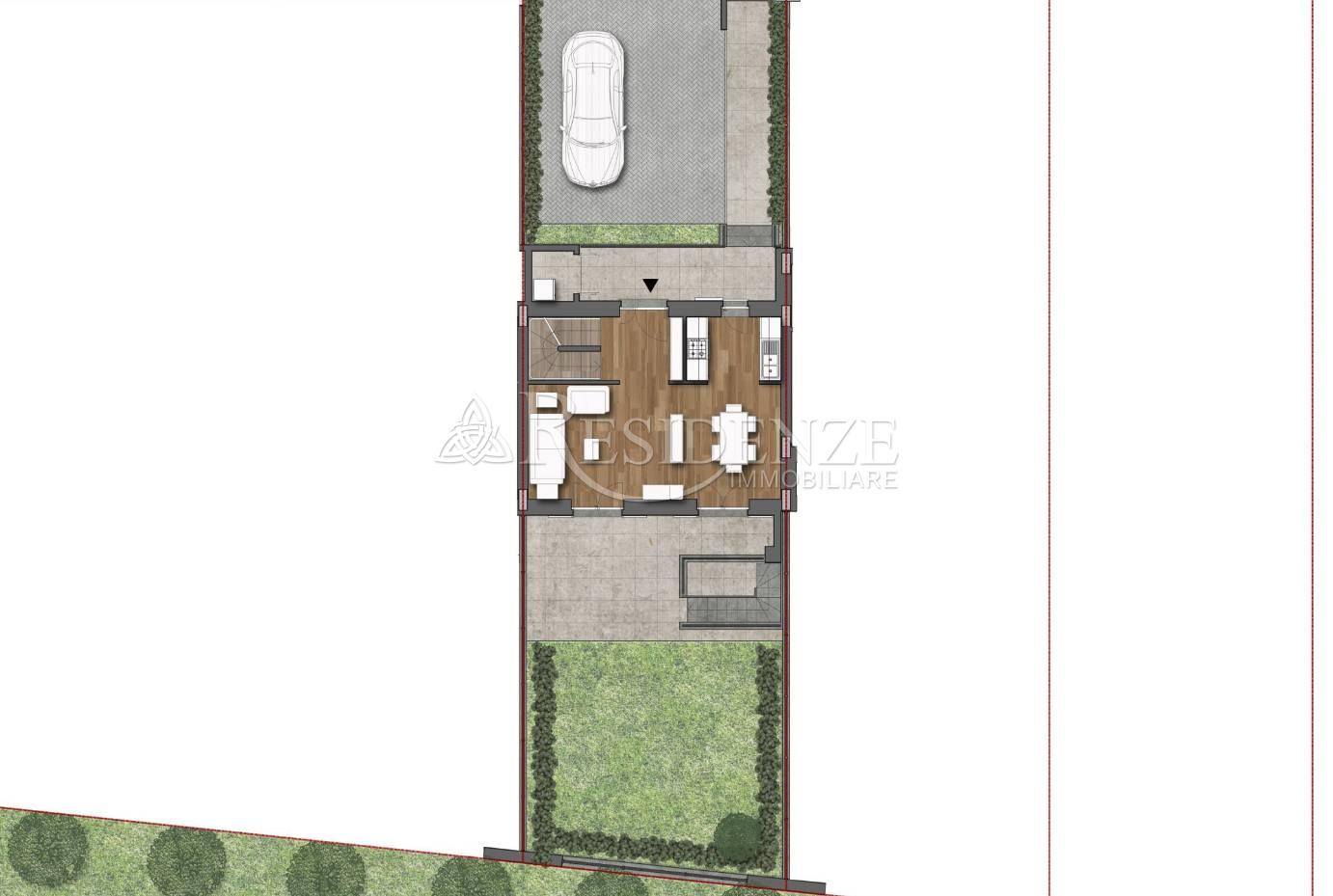 Villa a schiera distribuita su tre livelli, con giardino privato, corte pavimentata e comodi spazi interni.