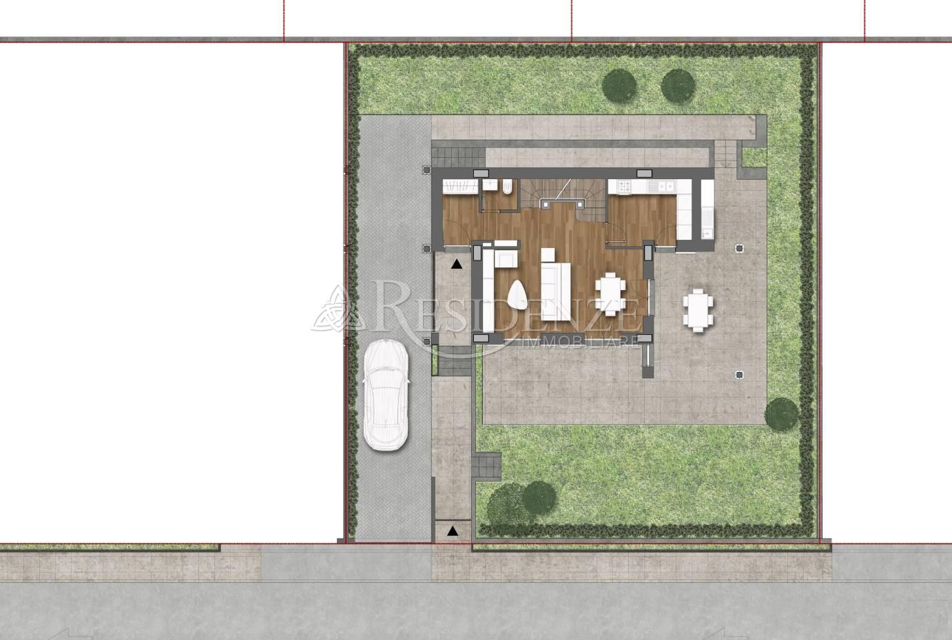 Villa unifamiliare su 3 livelli completamente indipendente su quattro lati con giardino angolare e corte perimetrali.