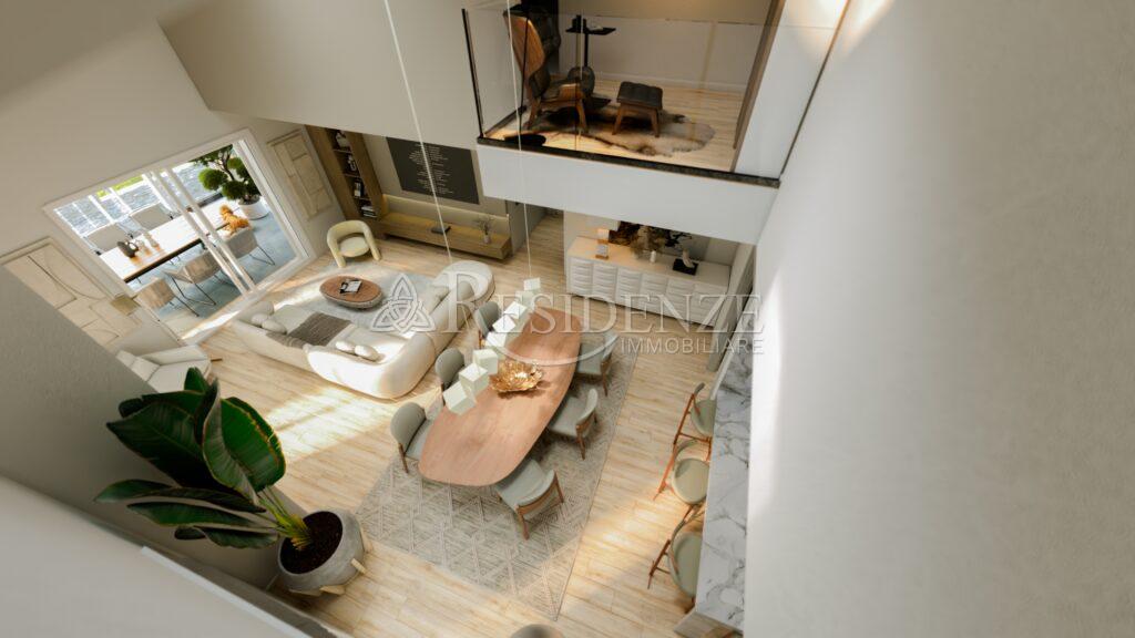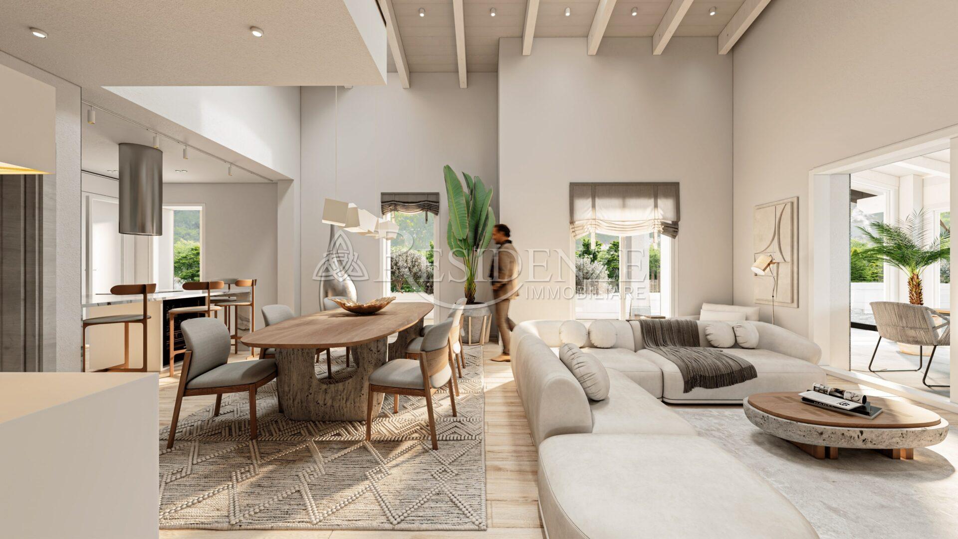 L’architettura moderna si caratterizza per uno stile pulito ed elegante, valorizzato dal tetto in legno lamellare ventilato e da ampie vetrate panoramiche che illuminano gli ambienti. Gli spazi interni, progettati per essere funzionali e ariosi, garantiscono il massimo comfort quotidiano, con una zona living luminosa che rappresenta il cuore della casa.